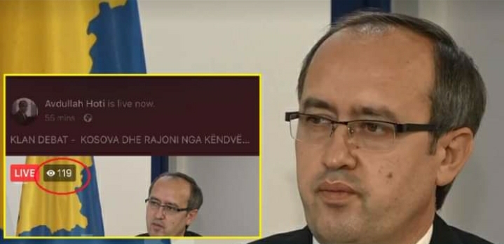 Në shpërndarjen e linkut nga kryeministri Hoti në profilin e tij në Facebook, është parë se intervistën e tij e ndiqnin vetëm 119 persona, sigurisht ky numër tejet i vogël dhe zhgënjyes, shkruan Reporteri.net.