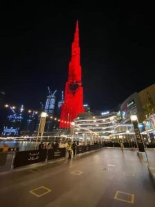 Ndërtesa më e lartë në botë, Burj Khalifa në Dubai, është ndriçuar krejtësisht me flamurin kuq e zi për nder të festës së 28 Nëntorit që e festojnë krejt shqiptarët kudo në botë.