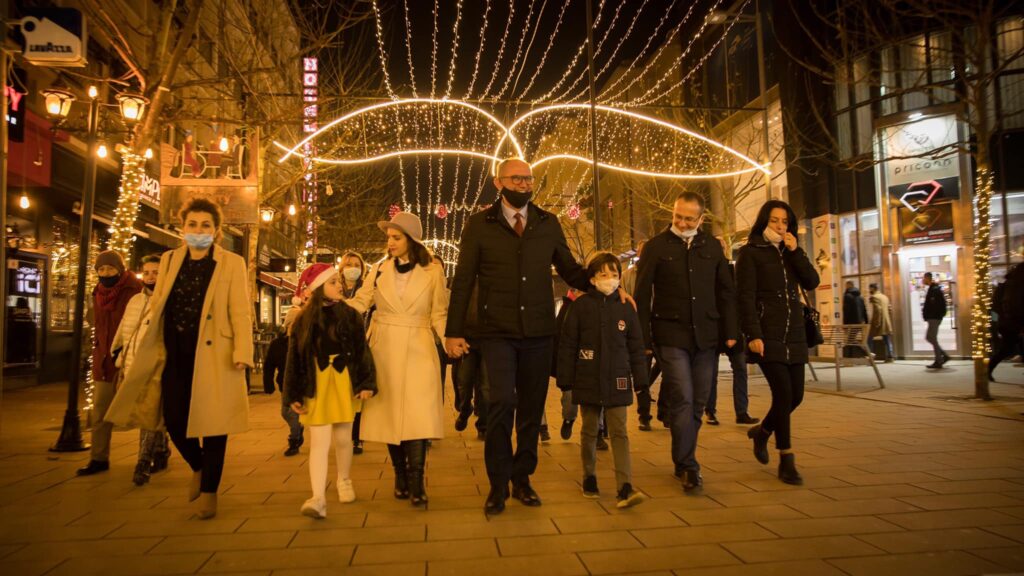 Bashkë me të vegjëlit dhe prindërit e tyre, ecëm sheshit kryesor të qytetit, me gëzimin e sinqeritetin e paskaj që veç fëmijët mund të përçojnë, për t’i thënë lamtumirë edhe pak ditë 2020-tës e mirësevjen Vitit të Ri 2021 me përplot shëndet, mirësi, ditë të mbara e mirëqenie për çdo ferizajas.