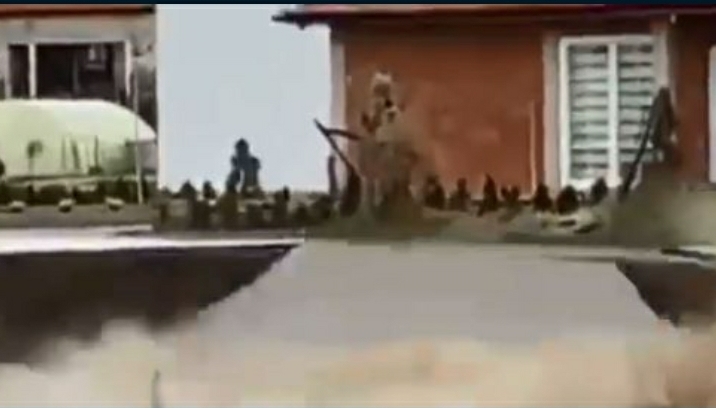 Në një video shihet teksa një pjesë e asfaltit në Koretin të Kamenicës shkëputet dhe bie në rrjedhën e lumit të tejmbushur, që e kishte gërryer bazën mbi të cilën ishte shtruar rruga.
