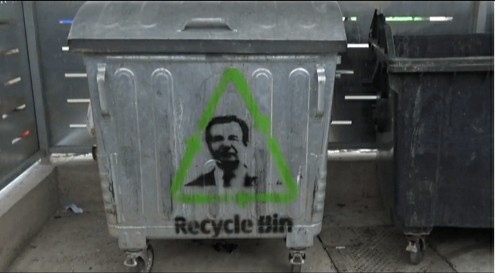 Disa pjesëtarë të kësaj partie, në numër të vogël, pa përkrahjen e popullatës, përfshirë edhe kreun e saj, Dardan Molliqaj, janë parë duke vendosur një parullë me fytyrën e liderit të Lëvizjes Vetëvendosje, ku shkruhet ‘shporta e riciklimit’, e të cilat i vendosën në disa kontejnerë.