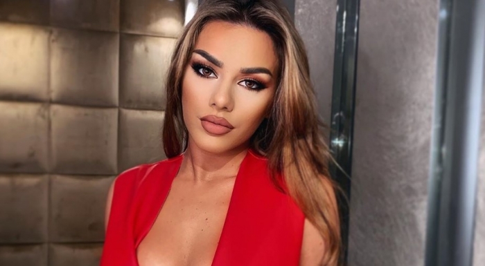 Ajo u shfaq në rrjete sociale me një fustan të ndarë nga pjesa e poshtme, plot gurë.