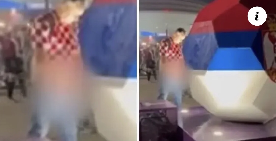 Pas ndeshjes ndërmjet Kroacisë dhe Japonisë, para stadiumit, një tifoz i veshur me fanellën e Kroacisë u ka kërkuar miqve të tij që ta filmojnë teksa po urinonte pranë një topi të madh me flamurin e Serbisë të pikturuar në të.