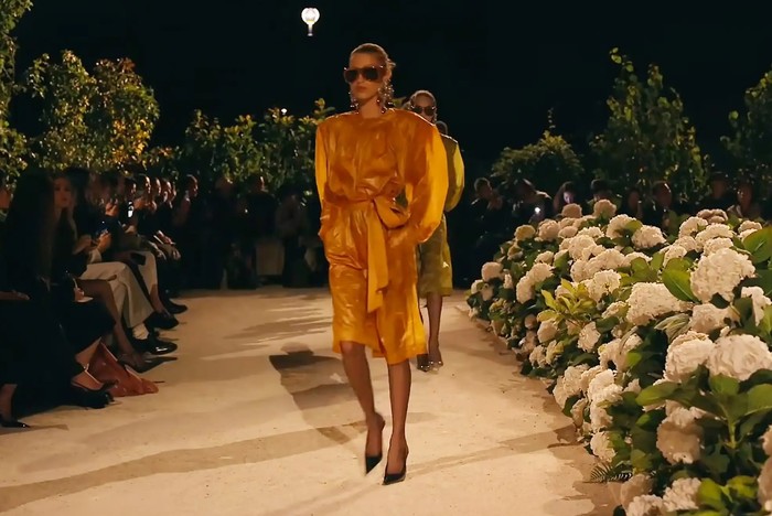 Ngjarja u zhvillua më 29 shtator, në një skenë madhështore në kopshtet pranë Kullës Eiffel, ku Bella u shfaq me një pallto të tejdukshme të koleksionit pranverë/verë 2026 të dizajnerit Anthony Vaccarello, të kombinuar me vathë të mëdhenj dhe syze dielli elegante.