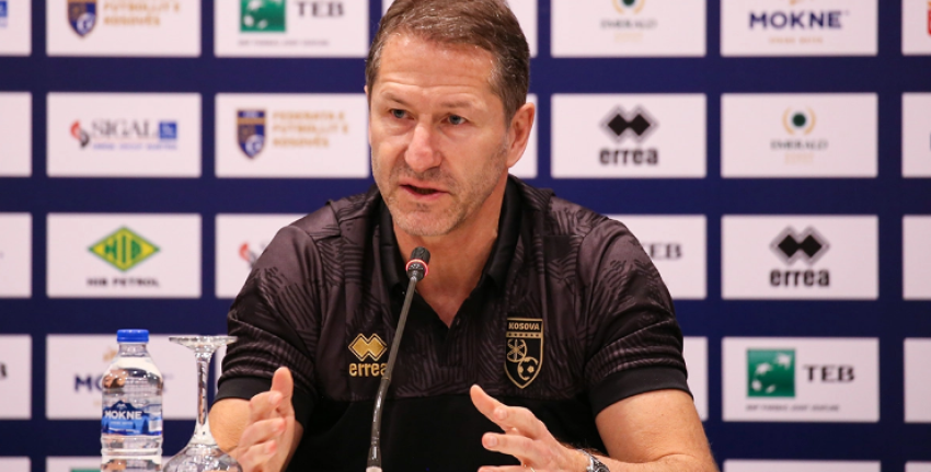 Trajneri i Kombëtares së Kosovës, Franco Foda, sot paraqitet në konferencë për media.