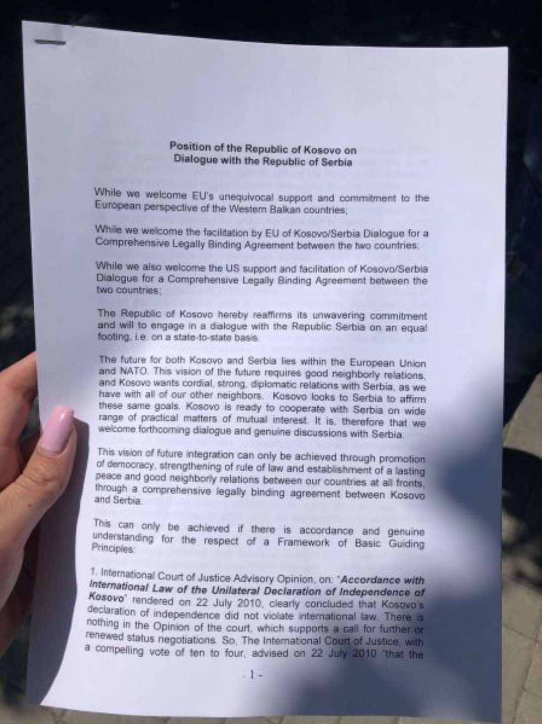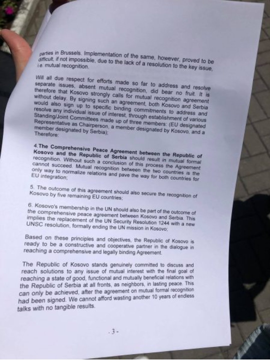 “Dialogu ka dështuar kohë më parë, shumica e marrëveshjeve që janë bërë në fazën e parë kanë dështuar. Nuk janë implementuar shumica nga ana e Serbisë, disa prej anës së Kosovës janë implementuar. Pra nuk ka ndryshuar asgjë në teren, ne konsiderojmë se dialogu sa i përket njohjes së Kosovës nga Serbia ka dështuar, ky dialog nuk e çon Kosovën drejt njohjes dhe anëtarësimit në BE. Ky dialog e ka fundosur Kosovën edhe më tutje prandaj duhet të ndalet sa më shpejtë të jetë e mundur sepse na duhet një klasë tjetër politike, një qeveri me legjitimet i cili e çon tutje vendin.[…]Me këtë marrëveshje e cila është nënshkruar në Uashington nuk presim ndonjë gjë, presim një rifillim të ri me presidentin amerikan”, thotë Pacolli.