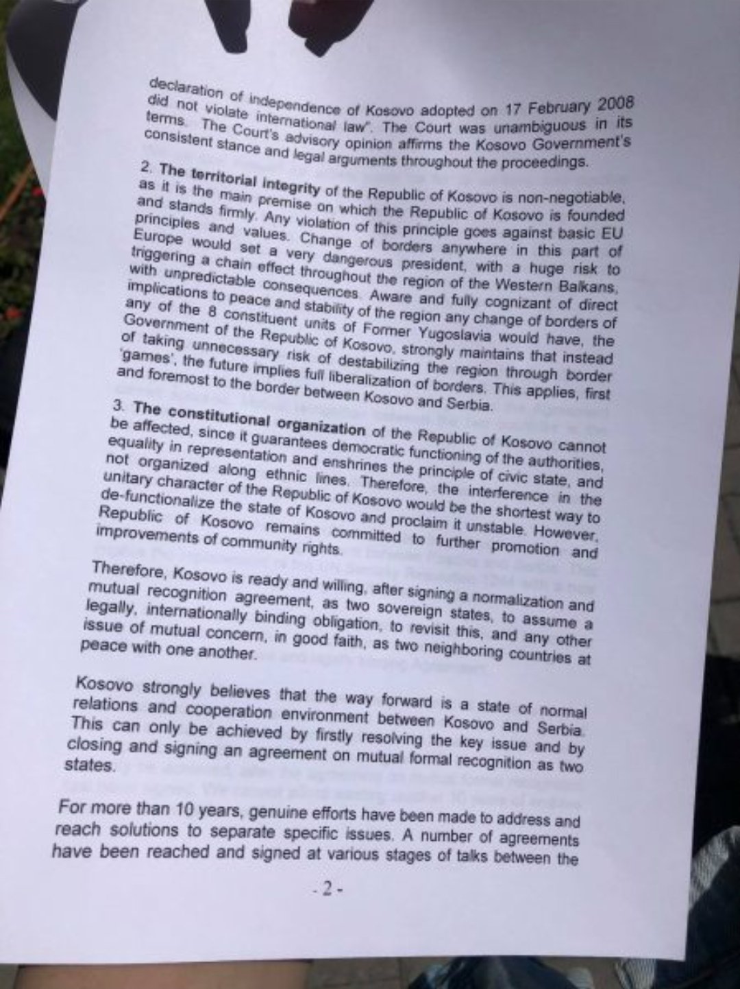 “Përpos rikthimit të dy palëve në tavolinën e diskutimeve nuk pamë diçka më markante dhe më të madhe nga ky dialog. U hapën shumë tema, u diskutua për shumë fusha, përfshirë edhe tema teknike të marrëveshjeve të kryera që më herët. Ky vit ishte më shumë vit i diskutimeve, por pa një rezultat të prekshëm. Marrëveshja e Uashingtonit gjithashtu u proklamua si e tillë, por përfundimet nga ajo marrëveshje ishin thuajse minimale, krahasuar me pritjet e palës së Kosovës. Po rikonfirmohet se fundi i dialogut është i paqartë, e ardhmja e tij është e paqartë”, thotë ai.