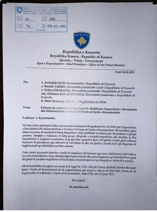 Selmanaj, sipas një postimi në Facebook, ka sqaruar se ka pasur bindjen që kjo seancë e thirrur nga kryeministri Albin Kurti ka qënë për ta shpërndarë një pjesë të përgjegjësisë, siç e quan ai, nga pazotësia e tij.