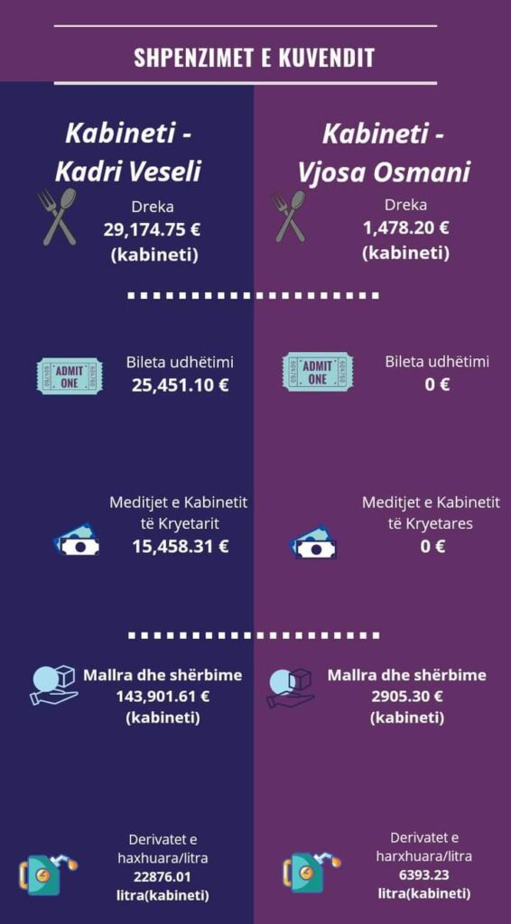 Vjosa Osmani ka bërë dallimet në shpenzimet gjatë kohes sa ishte Kryetarr e Kuvendit të Republikës së Kosovës në raport me shpenzimet e ish Kryetarit të Kuvendit Kadri Veseli.