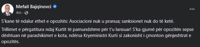 Jo Asociacion një etnik me komuna më shumicë serbe, por të përfshihën në Asociacionin e komunave në kuadër të Republikës së Kosovës dhë, jashtë qdo mendjeje, Autonomi në pjesën veriore.